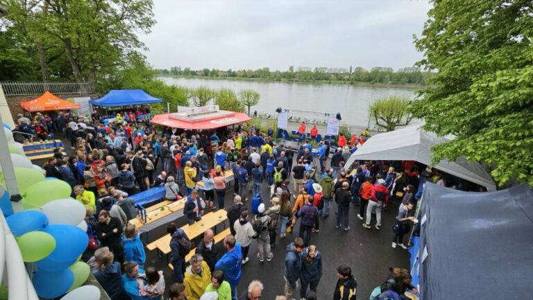 Der niedrige Wasserstand an dieser Stelle ist für einen Anlegesteg nicht ideal. Andererseits ist das ruhige Wasser auf der Innenseite der Rhein-Kurve für die Ruder-Ausbildung vorteilhaft.