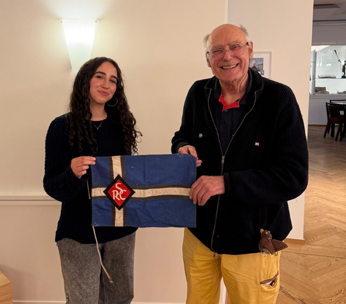 Fritz von Below, Jahrgang 1943, übergab eine Schatzkiste aus seiner SRC-Zeit an die aktuelle Vorsitzende Alba Macher, Jahrgang 2010.