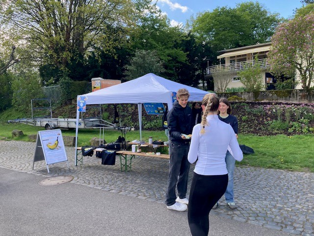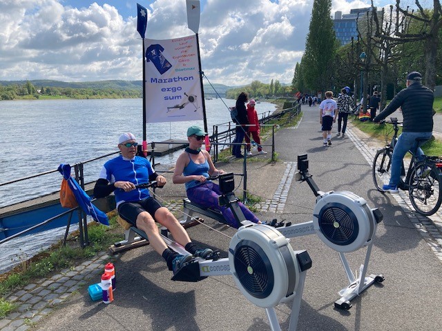 Beim Postmarathon am 19. April haben die Aktiven des GRC und des SRC Waffeln gebacken und Produkte mit der „Ruderbanane“ von Thomas Baumgärtel angeboten. 22.222 Läuferinnen und Läufer waren gemeldet und sind an unserem Stand vorbeigekommen. Da blieben nicht viele Bonnerinnen und Bonner als Zuschauer und Kunden der köstlichen Waffeln übrig. So blieb am Stand vor dem Bootshaus beim Bonner Ruder-Verein 1882 Zeit, die Marathon-Läuferinnen und Läufer laut und mit großer Energie anzufeuern. Einige Aktive vom Marathon nahmen das Angebot von Waffel-Herzen als Wegzehrung dankbar an. Unserem Stand gegenüber absolvierte ein Team des BRV 1882 den Marathon auf dem Ruder-Ergometer.