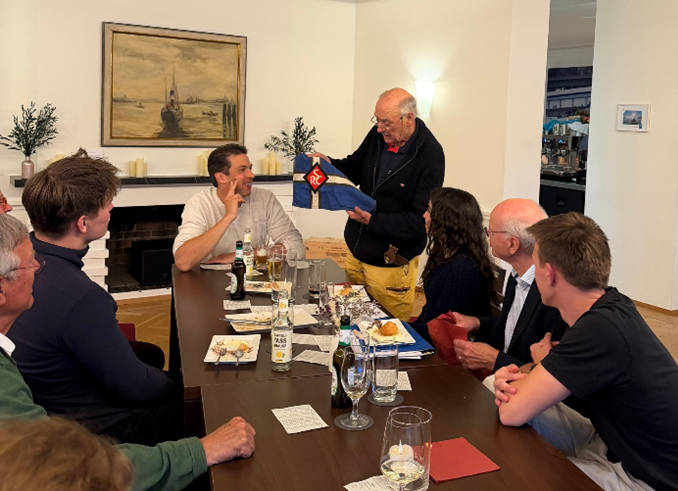 In einer kleinen Feier hat er einen von seiner Mutter genähten SRC-Bootswimpel, Ehrennadeln und Siegerurkunden an die aktuelle Vorsitzende Alba Macher, Jahrgang 2010, übergeben. Ein emotionales Treffen, ein Beleg, dass die Begeisterung für die selbstbestimmte Organisation des Schülerruderns über so lange Zeit weiter übertragen wurde – mit vermutlich 66 Vorsitzenden dazwischen, die jeweils für ein Jahr die Verantwortung übernommen haben!